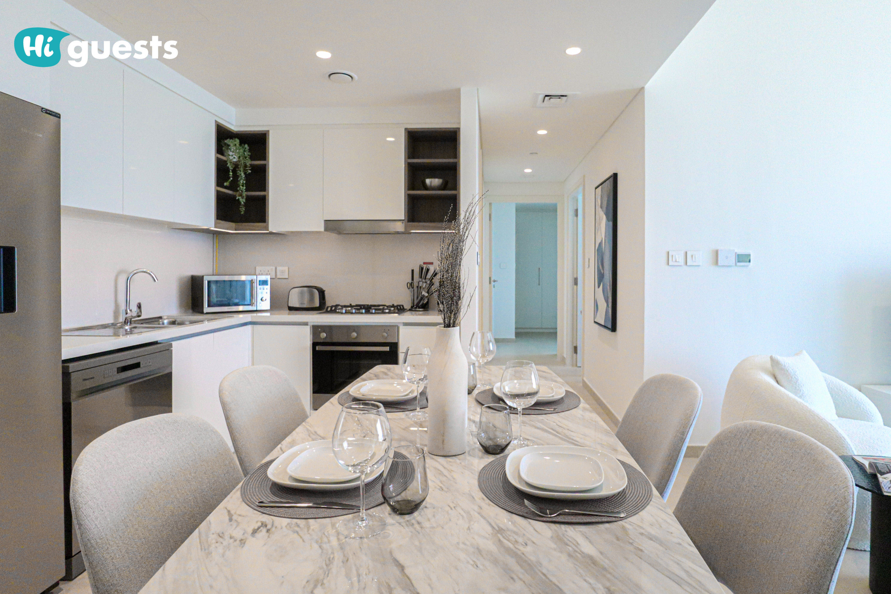 The apartment is registered as a Holiday Home, and all guests must provide their passport copies in advance as per Dubai regulations.