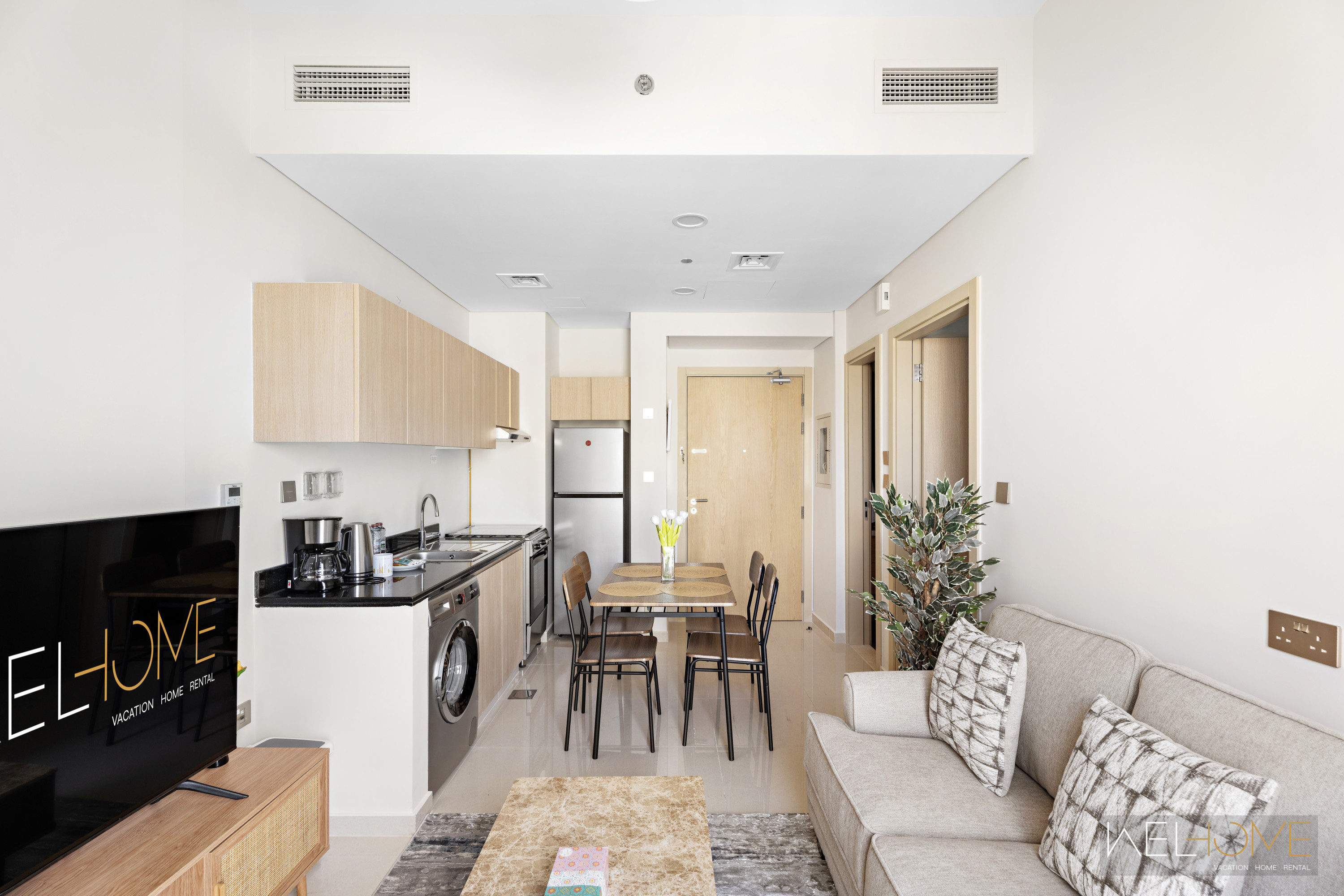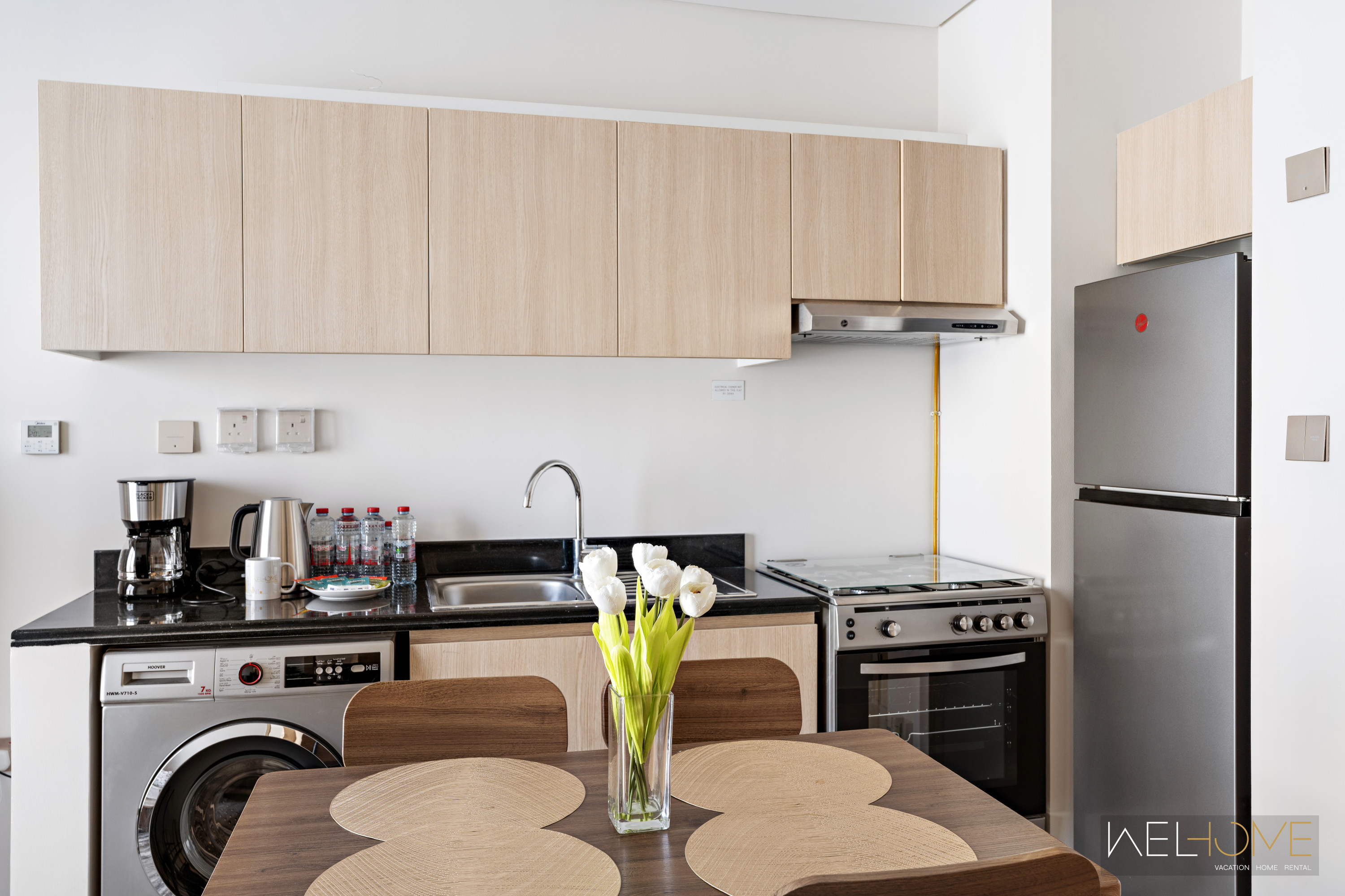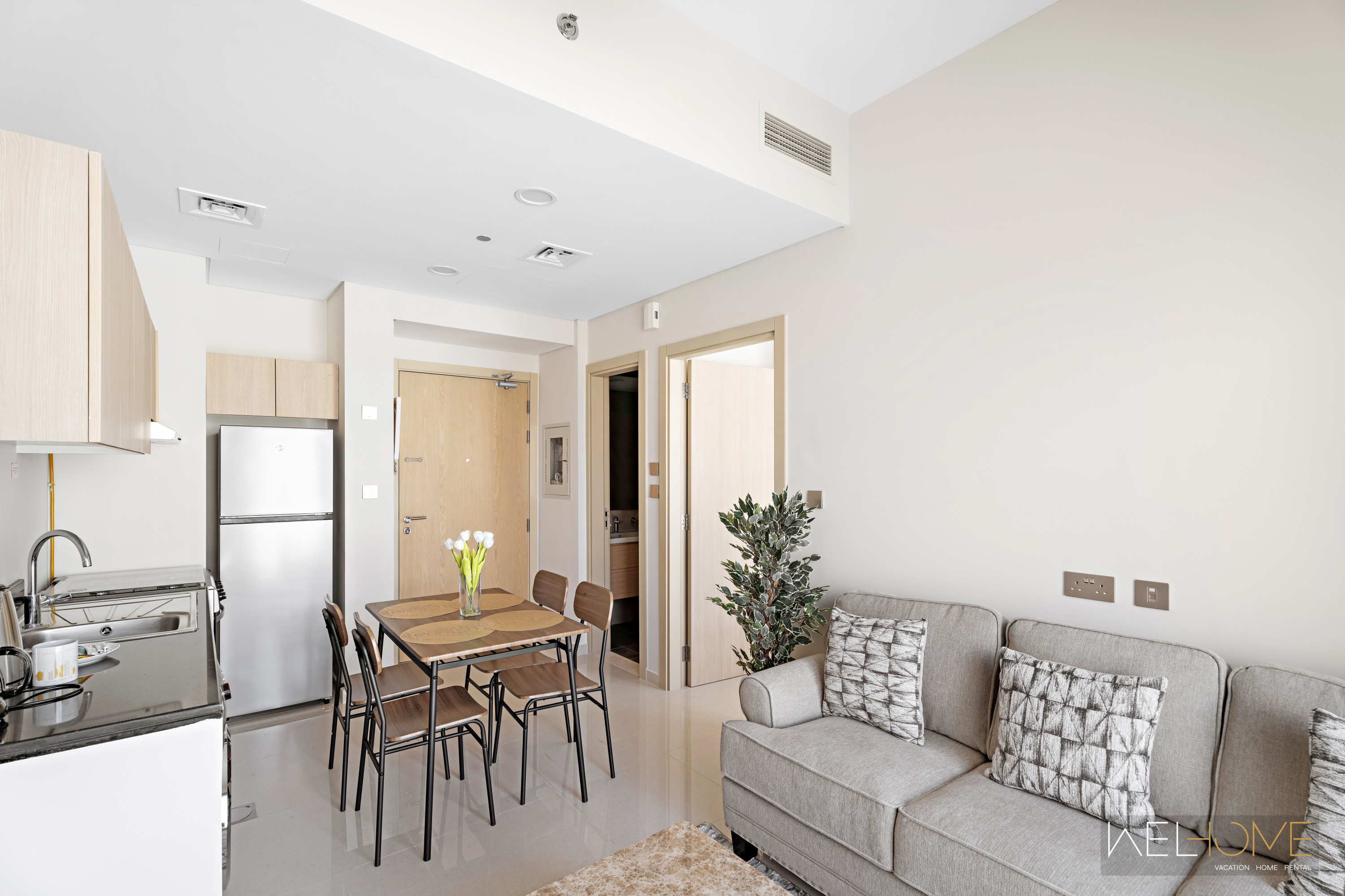 The apartment is registered as a Holiday Home, and all guests must provide their passport copies in advance as per Dubai regulations.