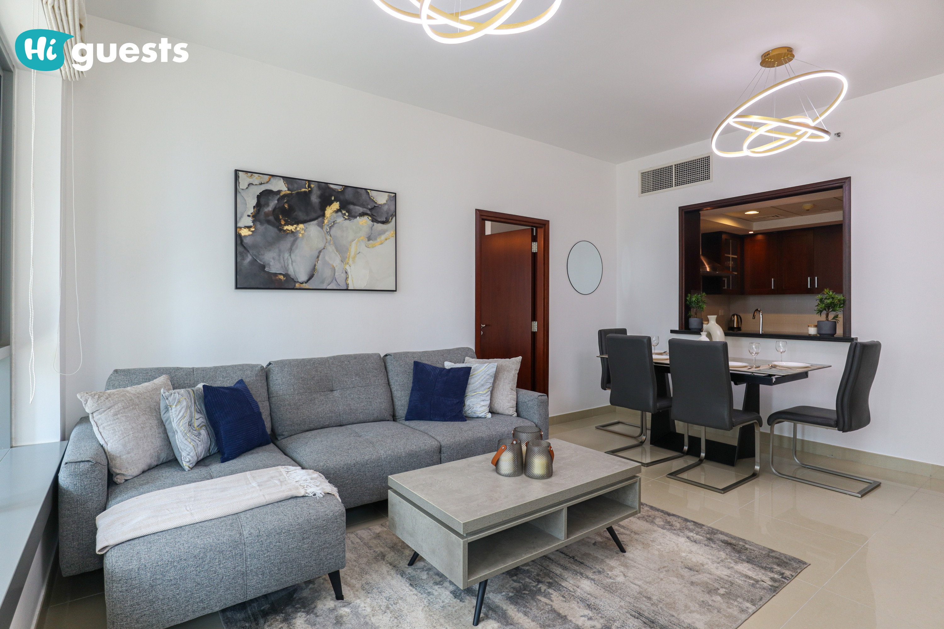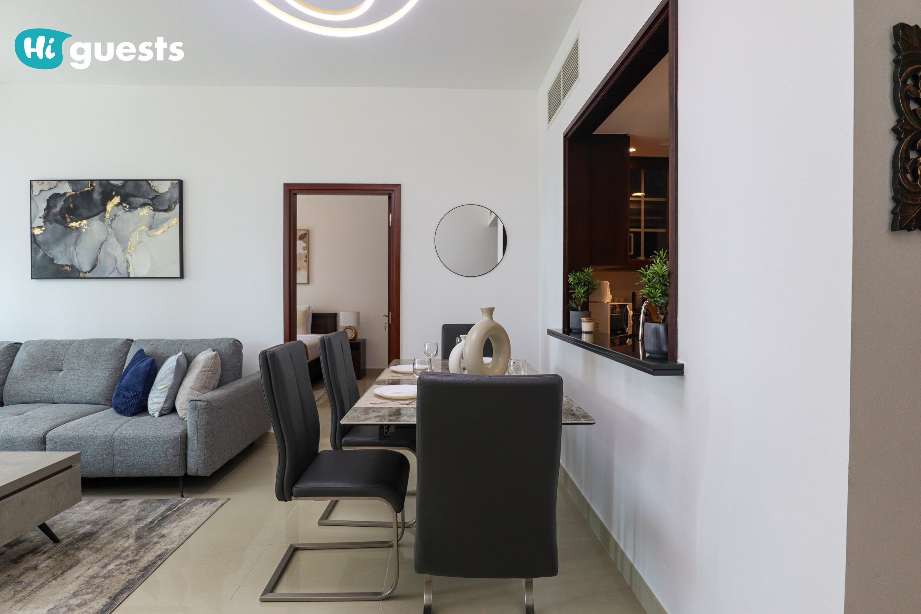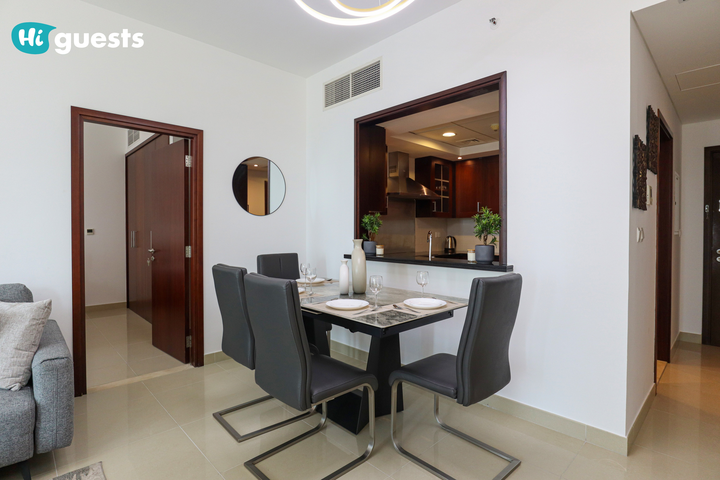 The apartment is registered as a Holiday Home, and all guests must provide their passport copies in advance as per Dubai regulations.